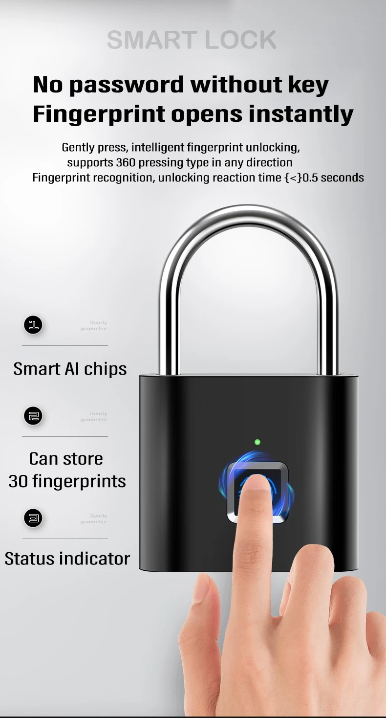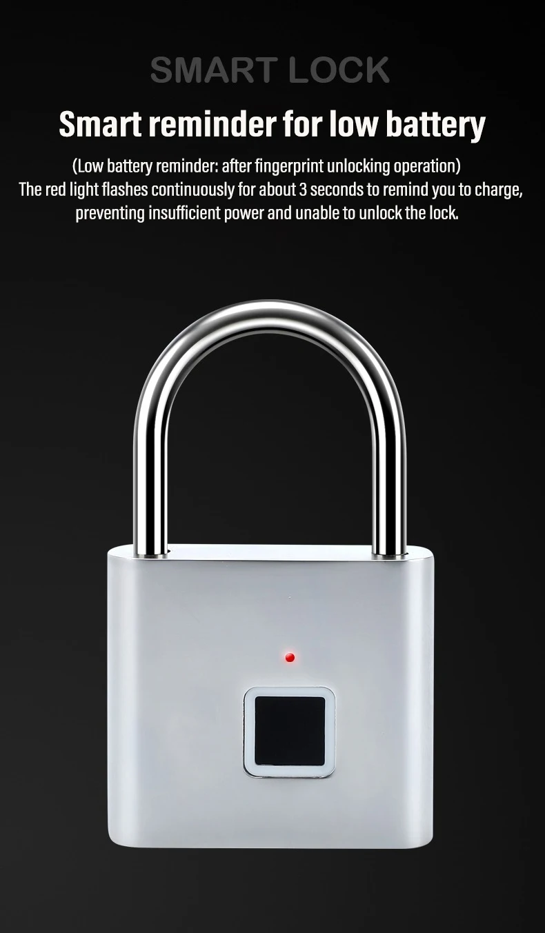 Smart Keyless Fingerprint Lock USB Charging Fingerprint Lock Waterproof Door Lock 0.2 Seconds Unlock Home Security Lock
