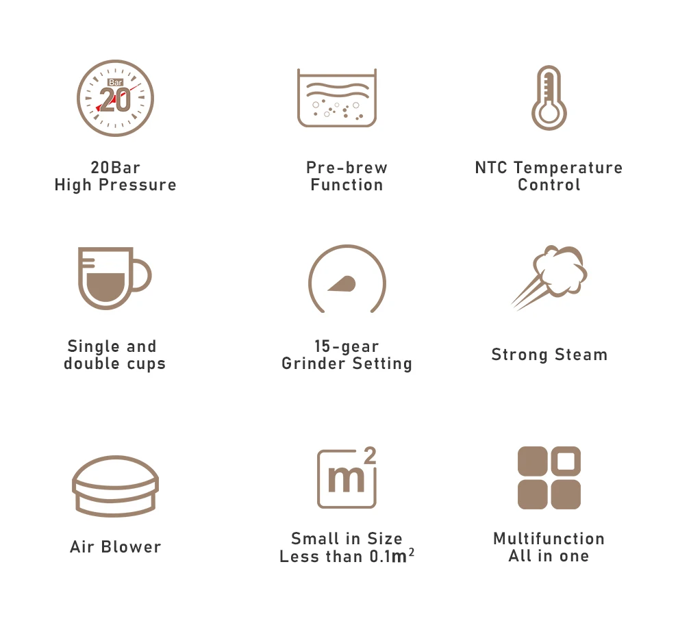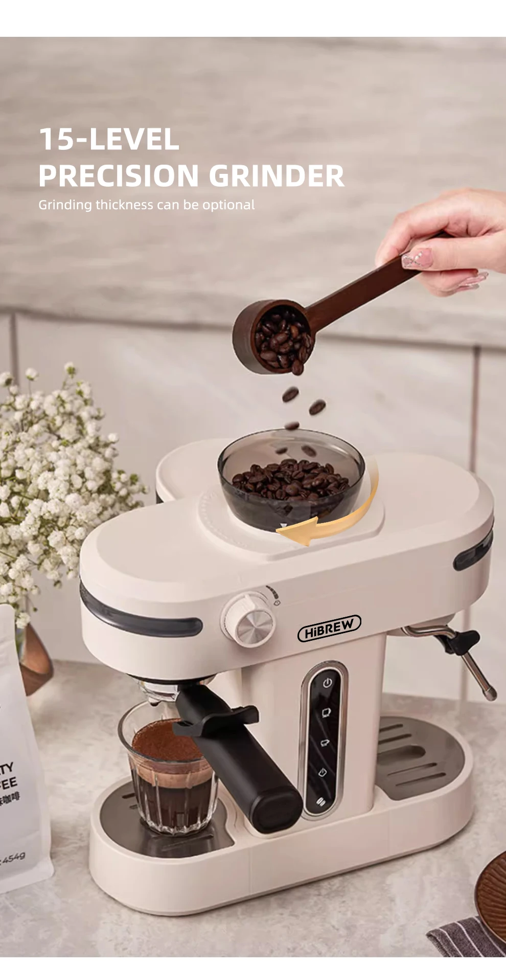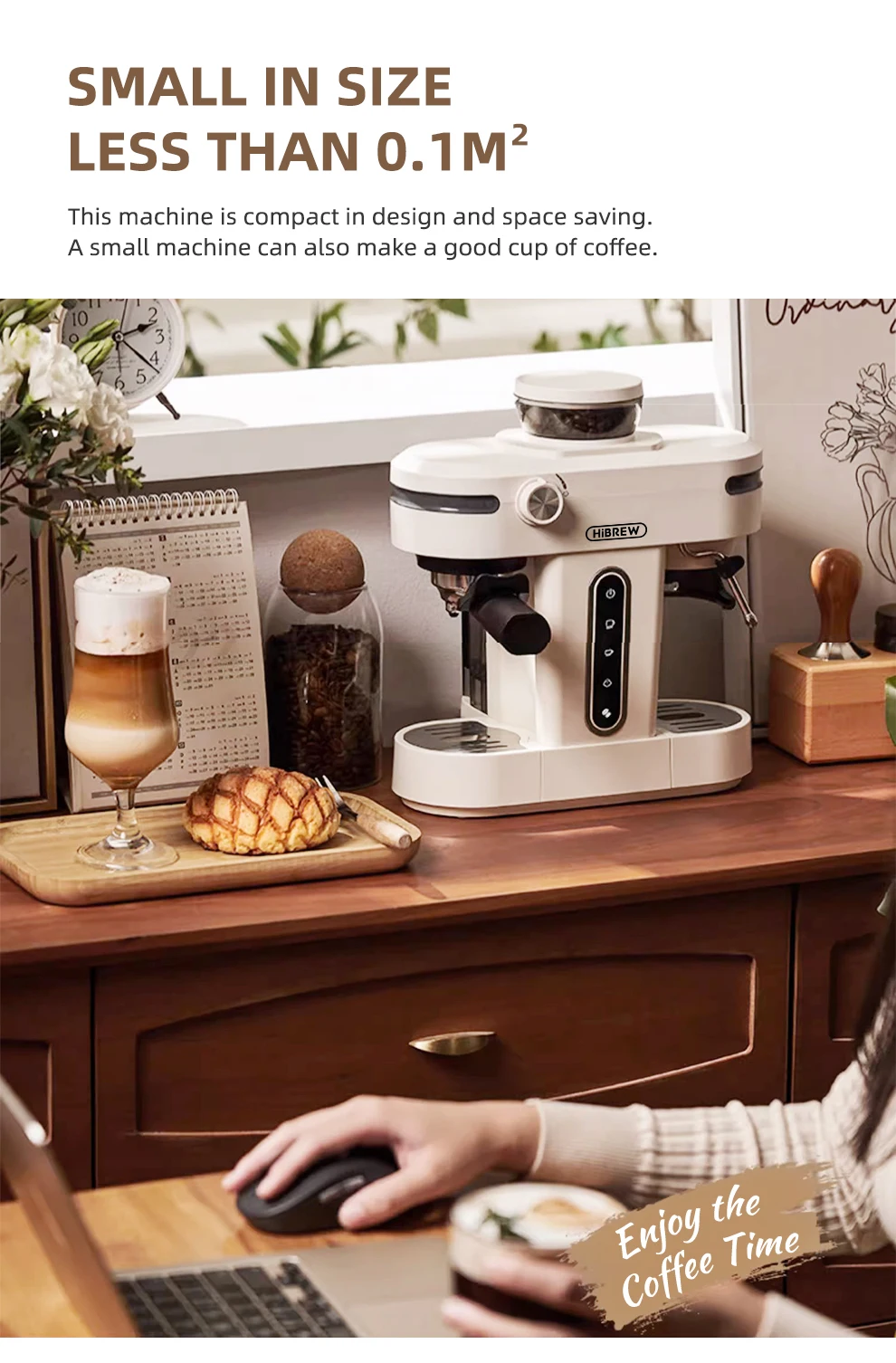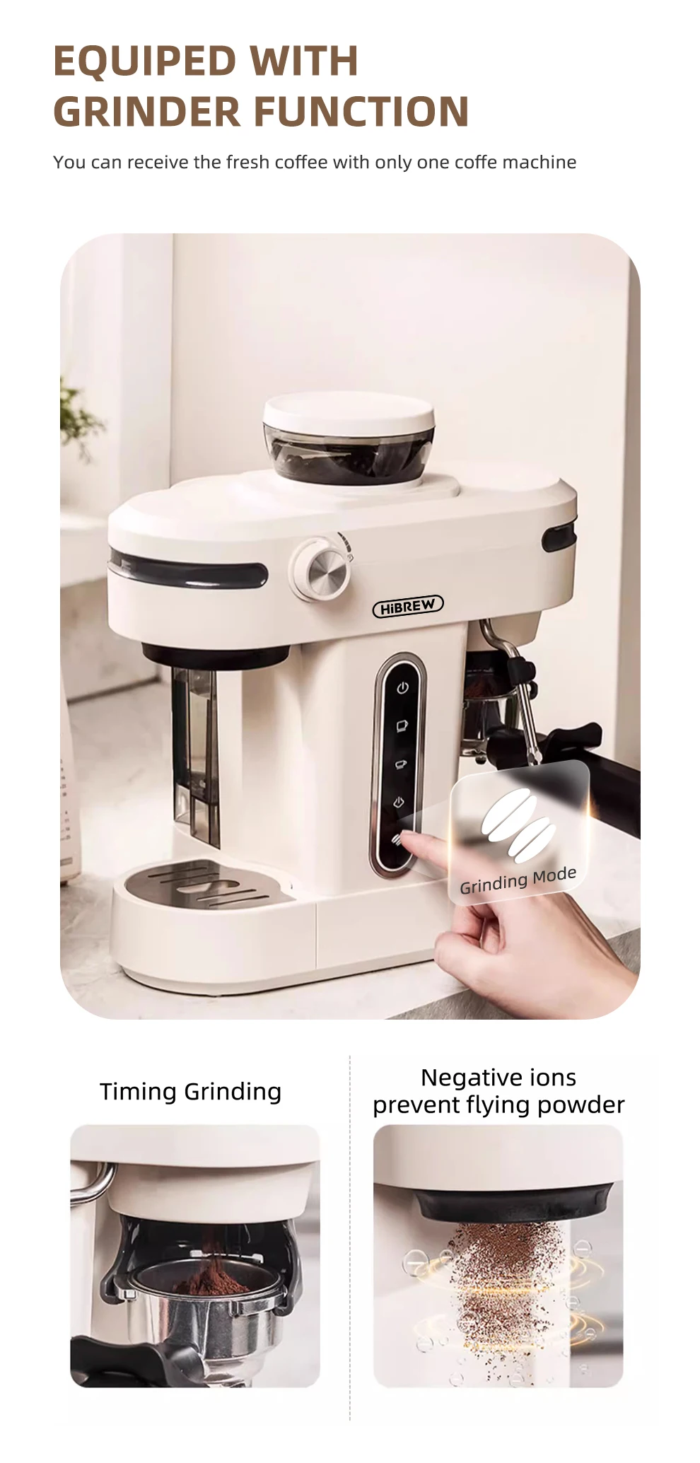 HiBREW 20 Bar Semi-Automatic Espresso Coffee Maker with Bean Grinder Cappuccino Latte Milk Frother System H14
